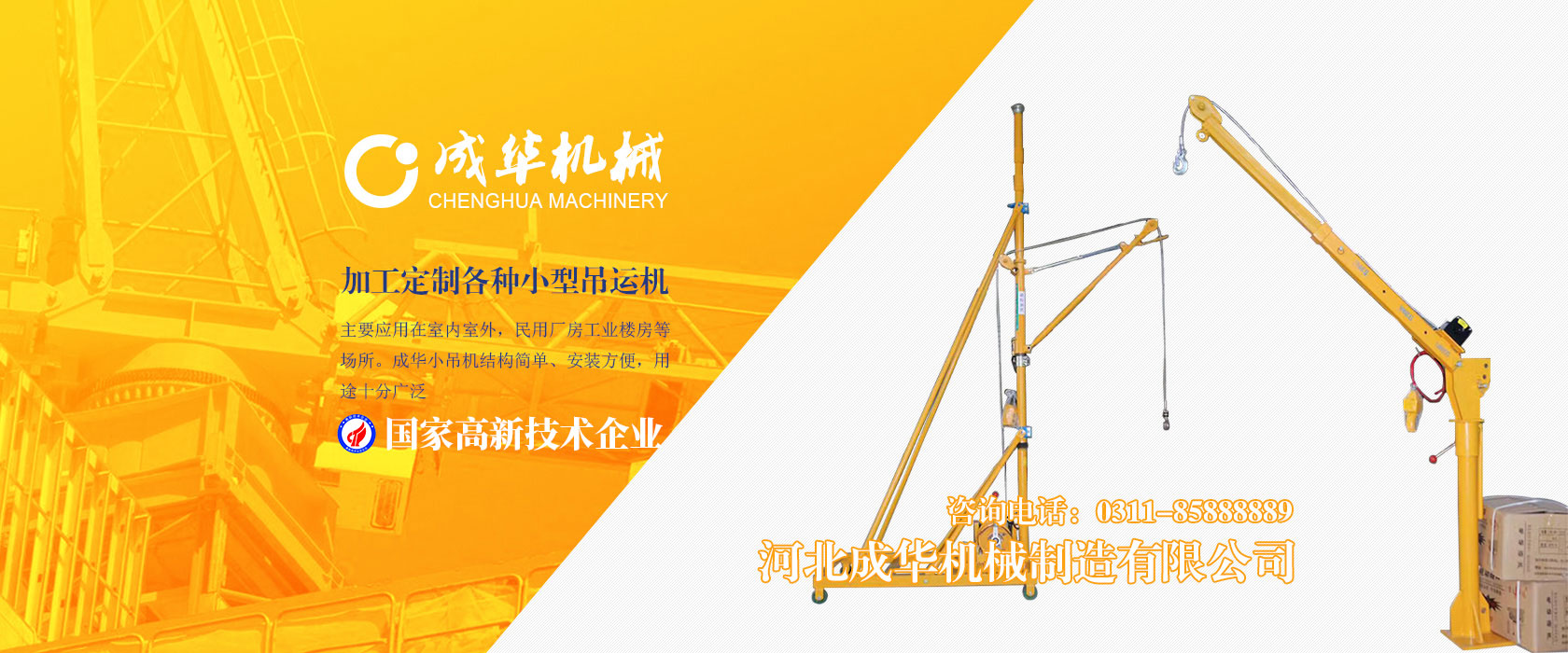 河北成華機(jī)械制造有限公司為國(guó)家高新技術(shù)企業(yè),旗下吊運(yùn)機(jī)制造廠是家專業(yè)生產(chǎn)制造便攜式小吊機(jī)、手提式小吊機(jī)附屬工廠,我廠產(chǎn)品主要應(yīng)用在室內(nèi)室外,民用廠房工業(yè)樓房等場(chǎng)所。成華小吊機(jī)結(jié)構(gòu)簡(jiǎn)單、安裝方便,用途十分廣泛,小吊機(jī)產(chǎn)品被廣泛應(yīng)用于機(jī)械制造、電子、汽車...